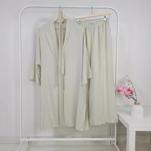 Two-Piece Beige Set (Kimono with Pants) – High-Quality Turkish Manufacturing