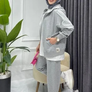 Sporty Hoodie and Pants Set in Gray – Turkish Manufacturing