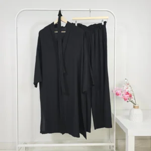 Two-Piece Black Set (Kimono with Pants) – High-Quality Turkish Manufacturing