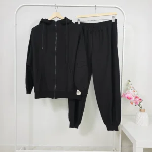 Sporty Hoodie and Pants Set in Black – Turkish Manufacturing