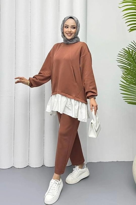 Blouse and Pants Set in Copper Brown – Turkish Manufacturing