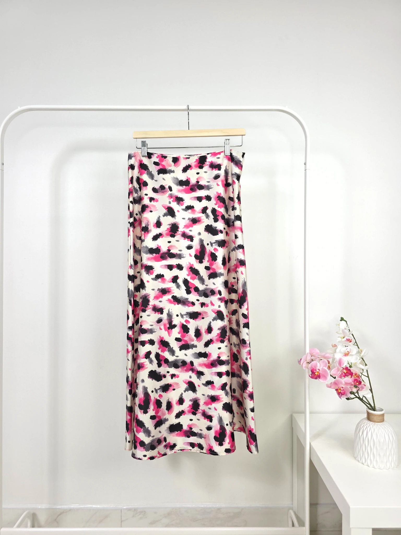 Printed Satin Skirt in Pink & Black – High-Quality Turkish Manufacturing
