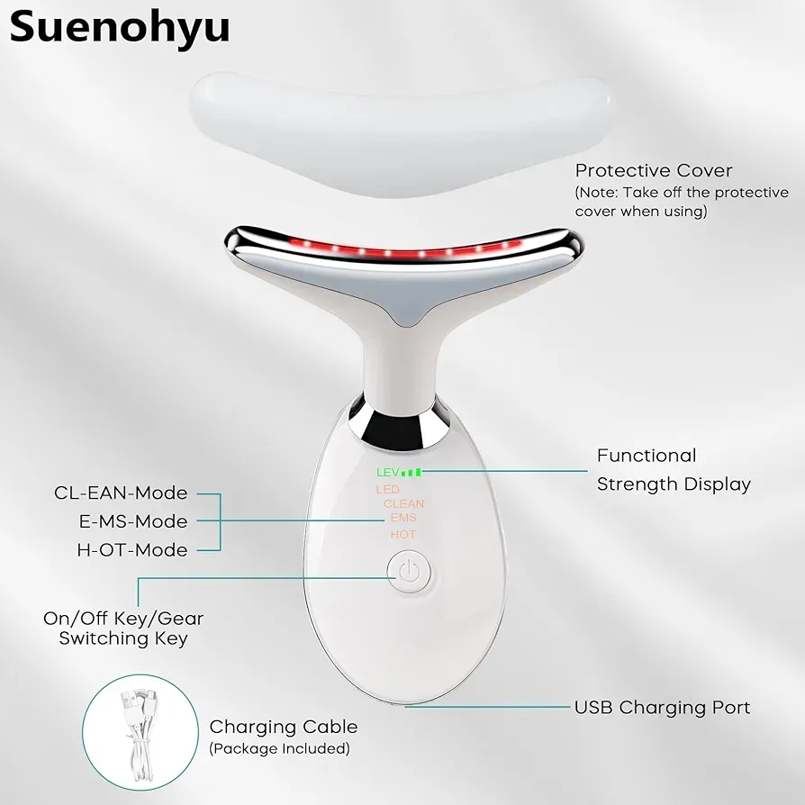 - Move the device over the face and neck for 10–15 minutes