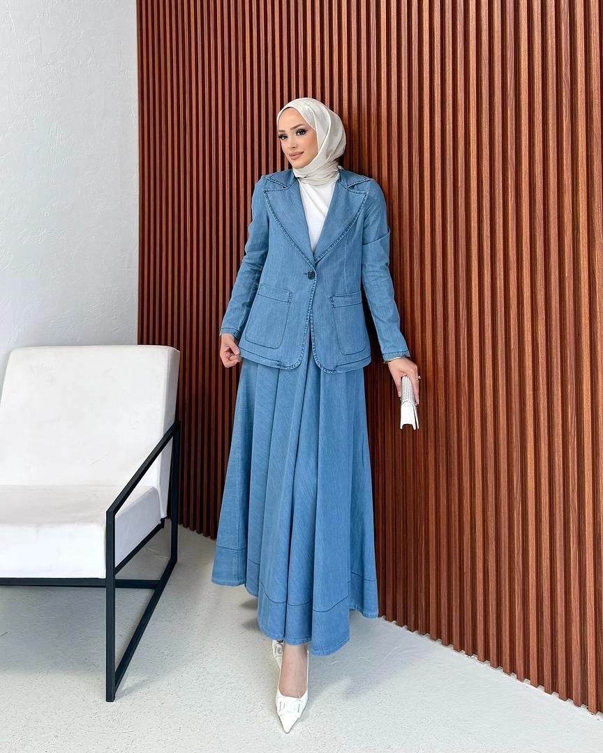 Women’s Blouse and Skirt Light Jeans Set – High-Quality Turkish Manufacturing