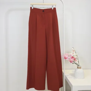 بنطلون نسائي رسمي واسع بلون أحمر طوبي – صناعة تركية