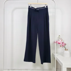 بنطال واسع رسمي وكاجوال باللون الكحلي مع خط أبيض على الخصر – صناعة تركية