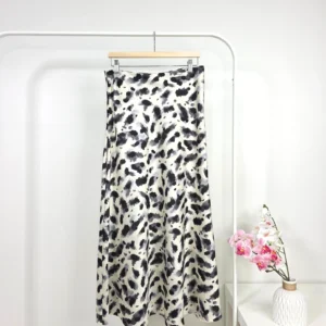 تنورة ساتان مطبوعة باللون الرمادي والأسود – صناعة تركية عالية الجودة