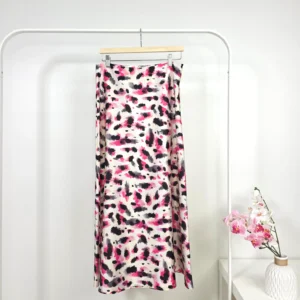 تنورة ساتان مطبوعة باللون الوردي والأسود – صناعة تركية عالية الجودة