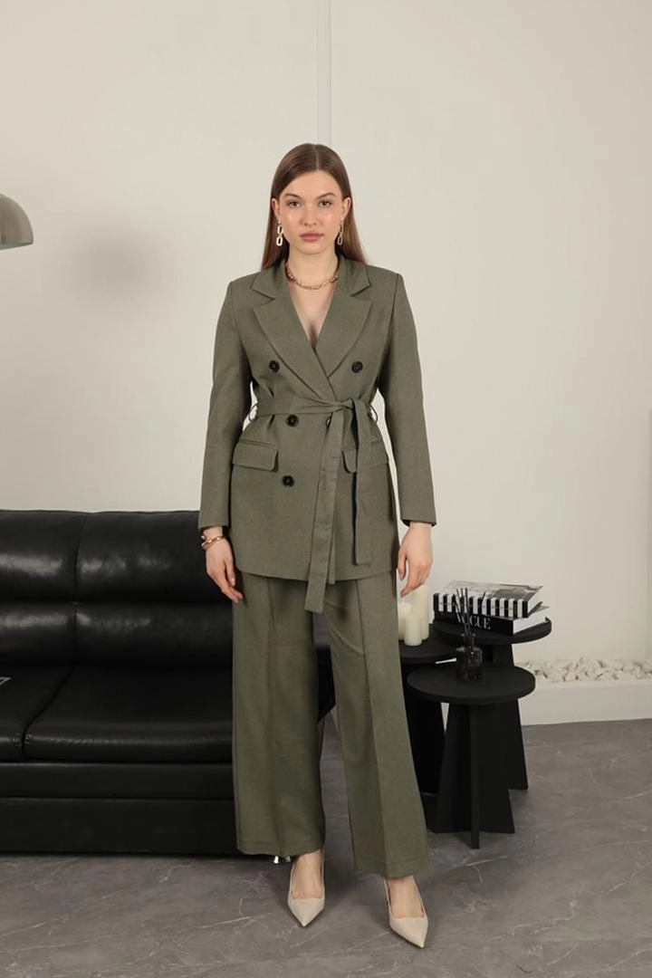 بدلة نسائية باللون الزيتوني – جاكيت وبنطال – صناعة تركية