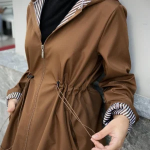 معطف شتوي طويل هودي باللون البني – صناعة تركية