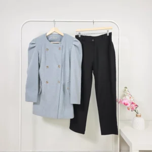 طقم شتوي مكون من جاكيت باللون الأزرق مع بنطلون أسود – صناعة تركية