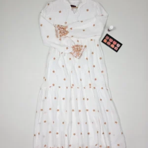 فستان طويل أوف وايت مطرز باللون البني – صناعة تركية
