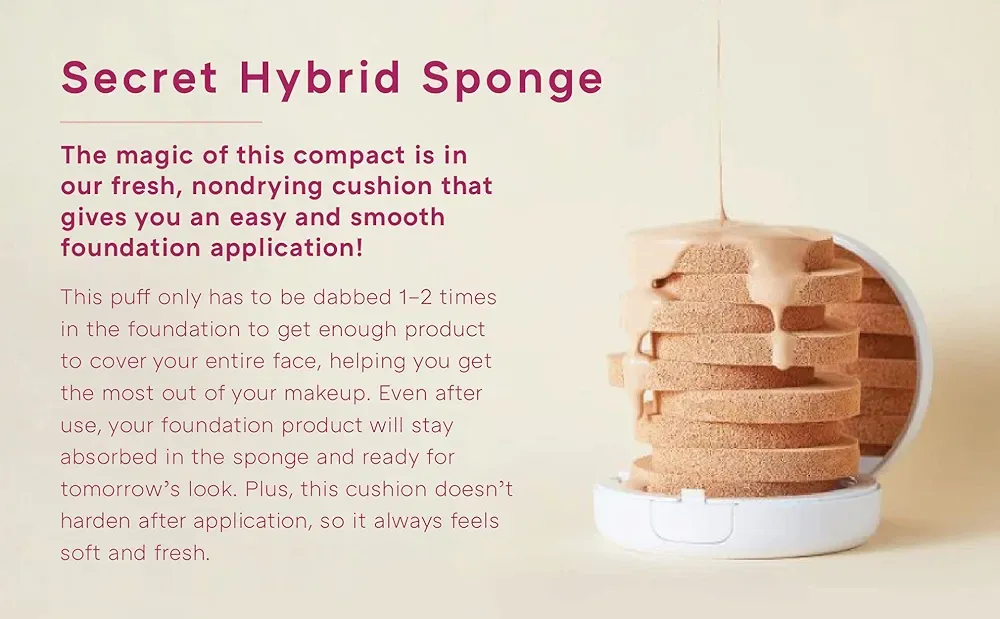 - كريم أساس كوري مبتكر من ميشا بتركيبة الكوشن التي تمنح تغطية طبيعية ومتوسطة إلى كاملة، مع حماية قوية من أشعة الشمس SPF50+/PA+++. يساعد على توحيد لون البشرة وإخفاء العيوب مع لمسة نهائية مشرقة ومنعشة، كما يحتوي على مكونات مرطبة تحافظ على ترطيب البشرة طوال اليوم.